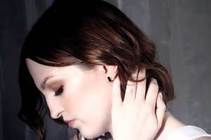 Clean-lined and designed to eliminate any extraneous detail, these modern elegant baguette cut Black Sapphire pair of stud earrings feature a unique North-South, East-West four claw setting. Crafted in 18ct gold these stud earrings attach to the ear with a butterfly back.