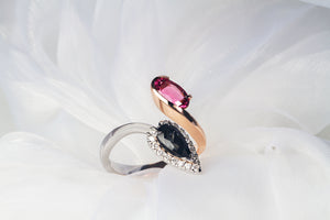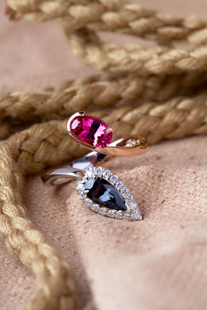 Mahenge pink spinel and Pear cut Grey Spinel Ring
